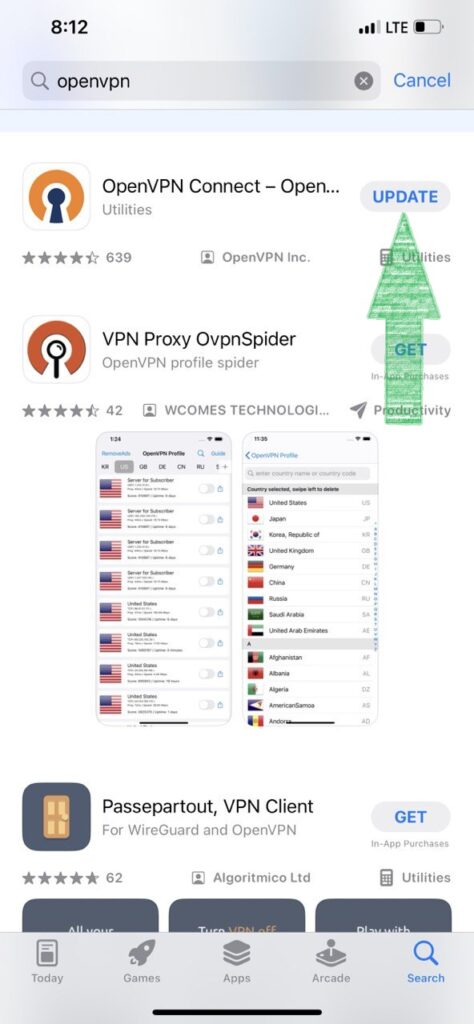 برای نصب OpenVPN ابتدا از App Store گوشی یا تبلت خود برنامه OpenVpn Connect را سرچ کنید و آن را نصب کنید