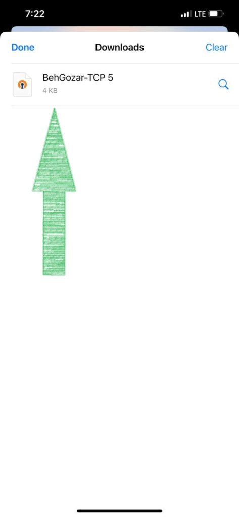 لیست فایل های دانلود شده درون گوشی شما باز میشود . از داخل لیست اولین فایل به اسم BehGozar-TCP را انتخاب کنید و روی آن کلیک کنید (همانند تصویر زیر)